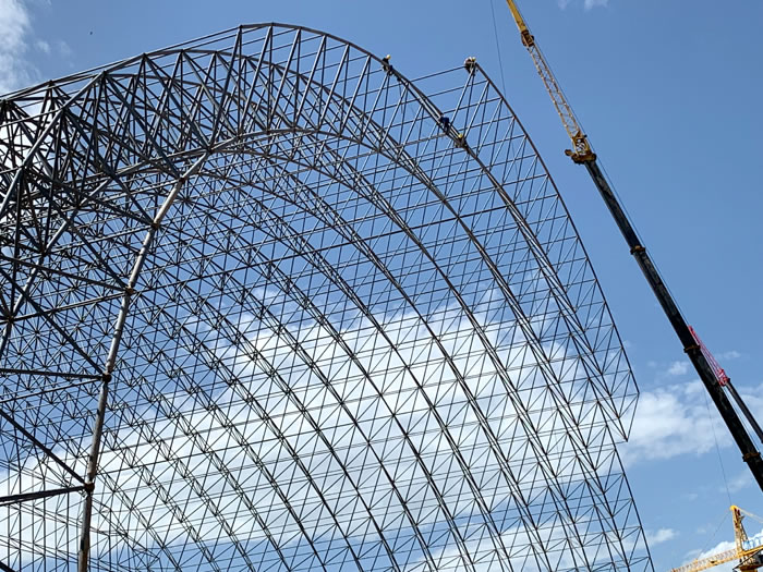 (2)网架加工前应对现场尺寸进行复测,确认无误后方可进行加工、安装;网架制作、运输、安装应遵守《空间网格结构技术规程》JGJ7-2010、《钢网架临沧螺栓球节点》JG/T 10-2009、《钢网架临沧螺栓球节点用高强度螺栓》 GB/T 16939-2016、《临沧钢结构临沧工程临沧施工规范》 GB50755-2012、《临沧钢结构临沧工程施工质量验收标准》 GB50205-2020。